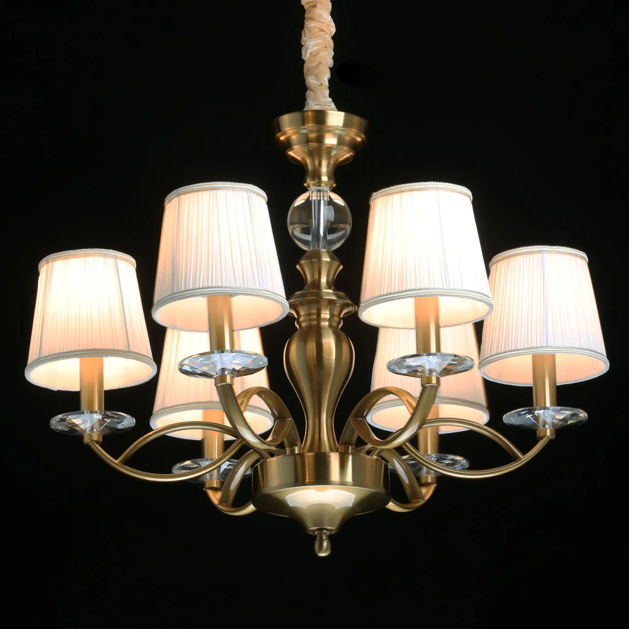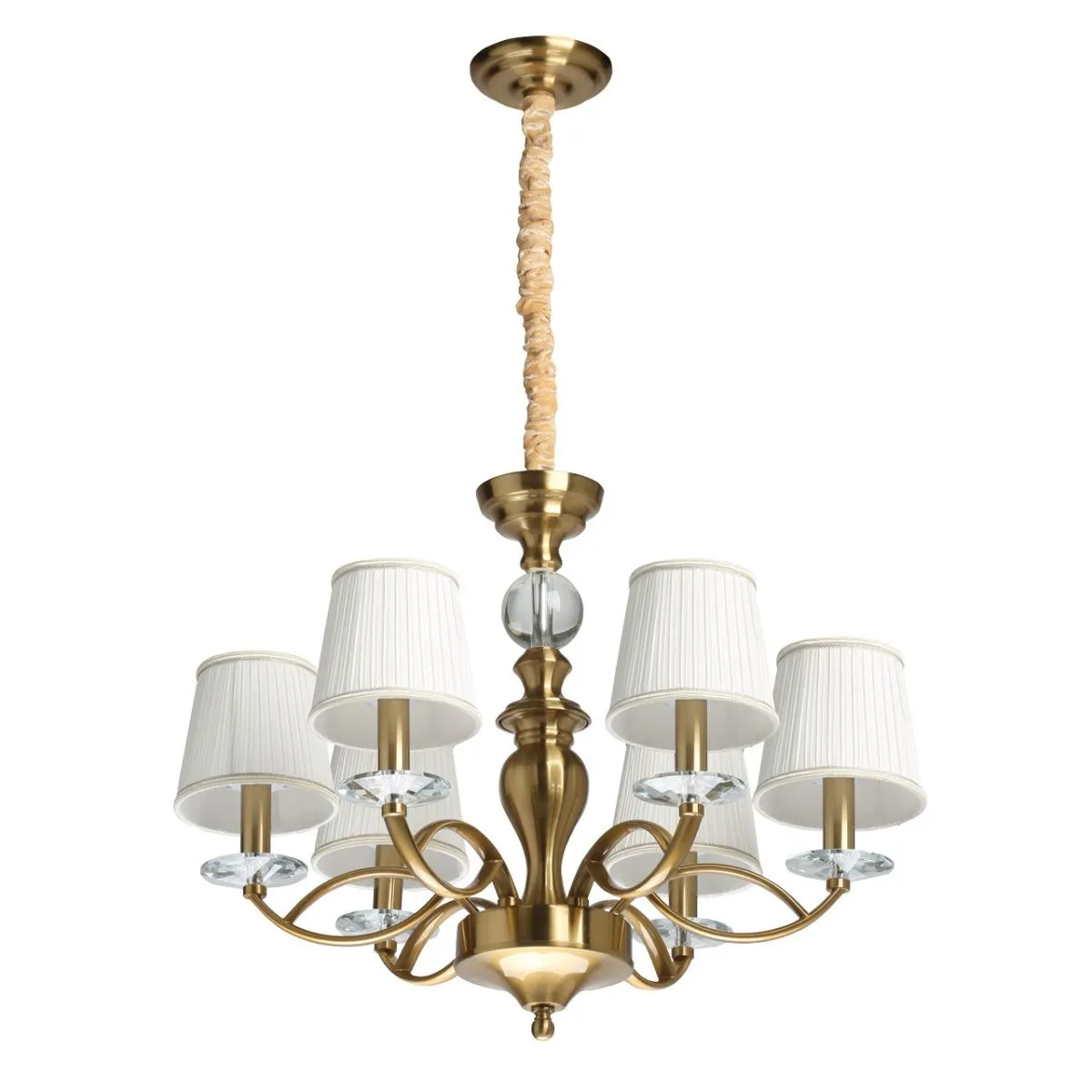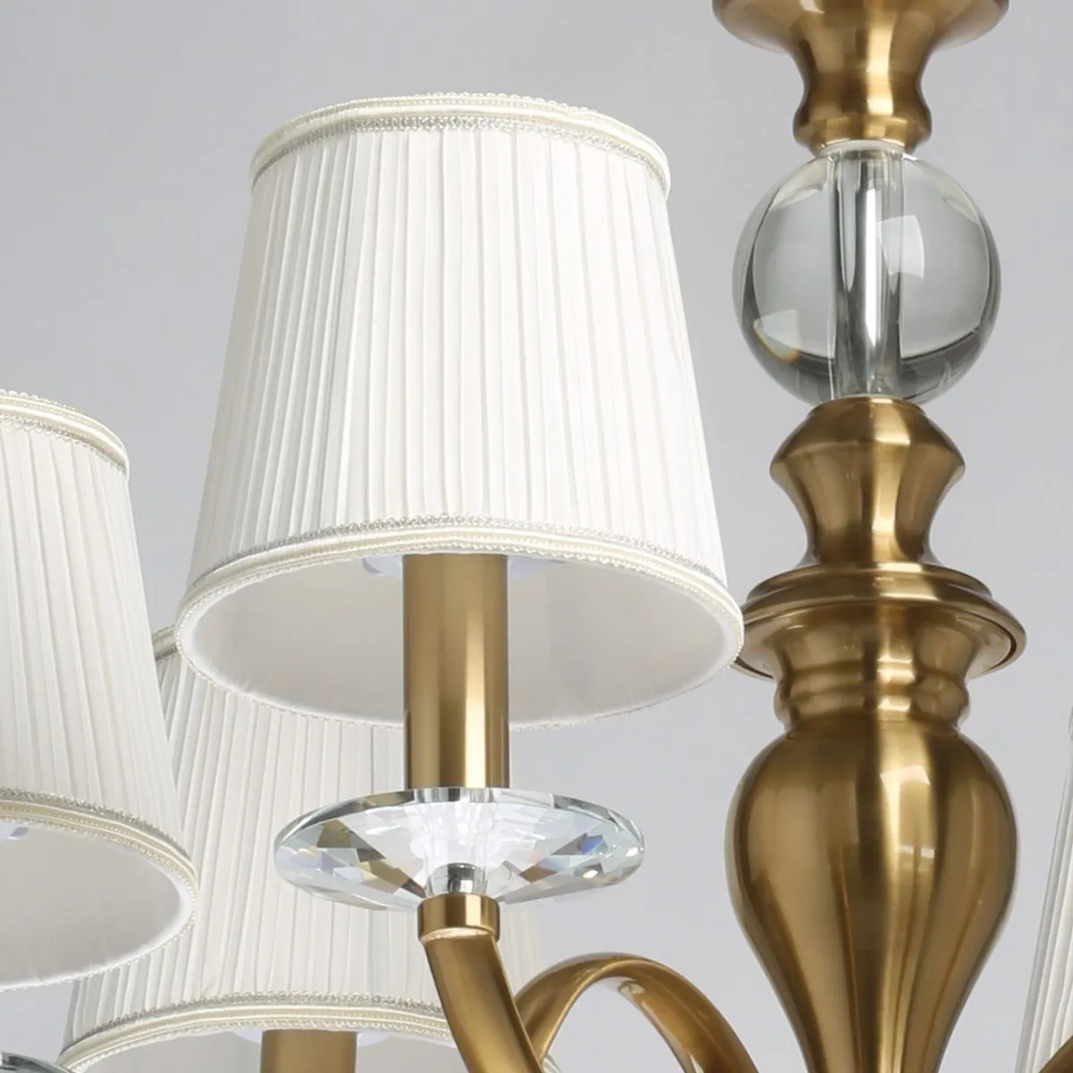 Основание/ металл/ медовая бронза Абажуры/ текстиль/ белый Декор/ хрусталь/ прозрачный