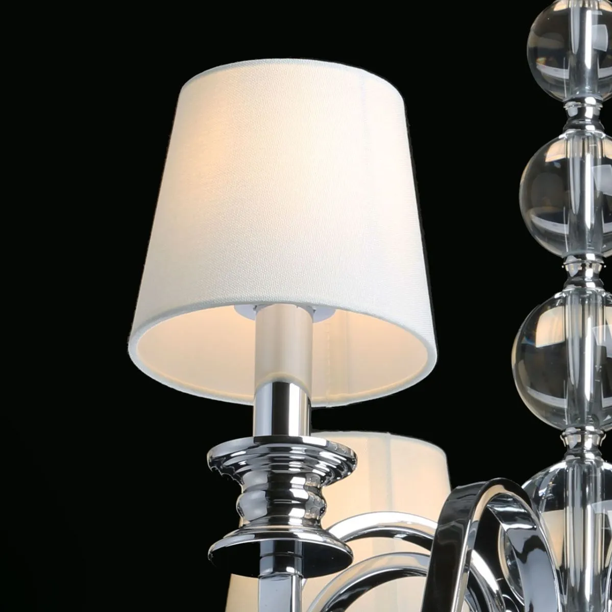 Основание/ металл/ хром Абажуры/ акрил, текстиль/ прозрачный, белый Декор/ хрусталь/ прозрачный