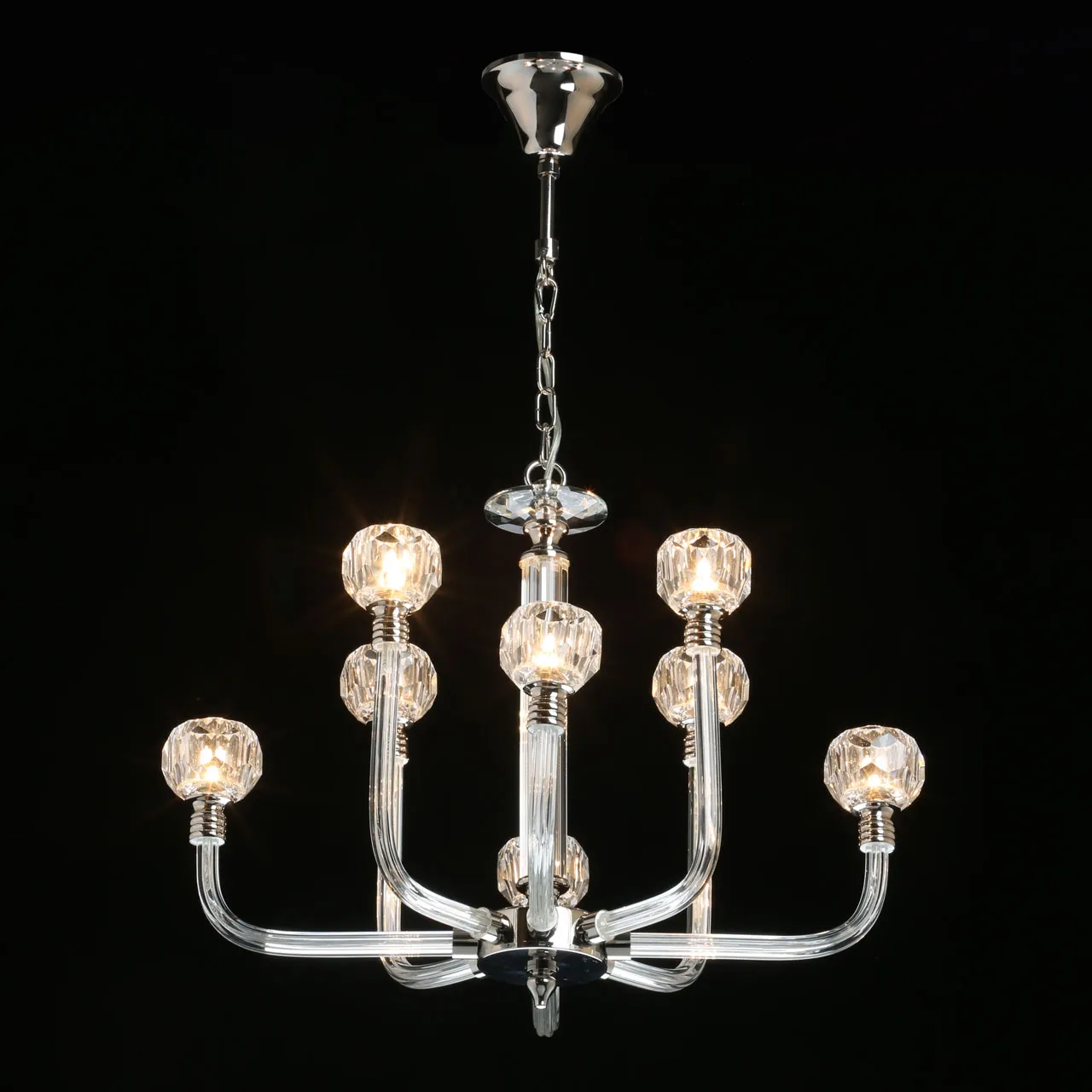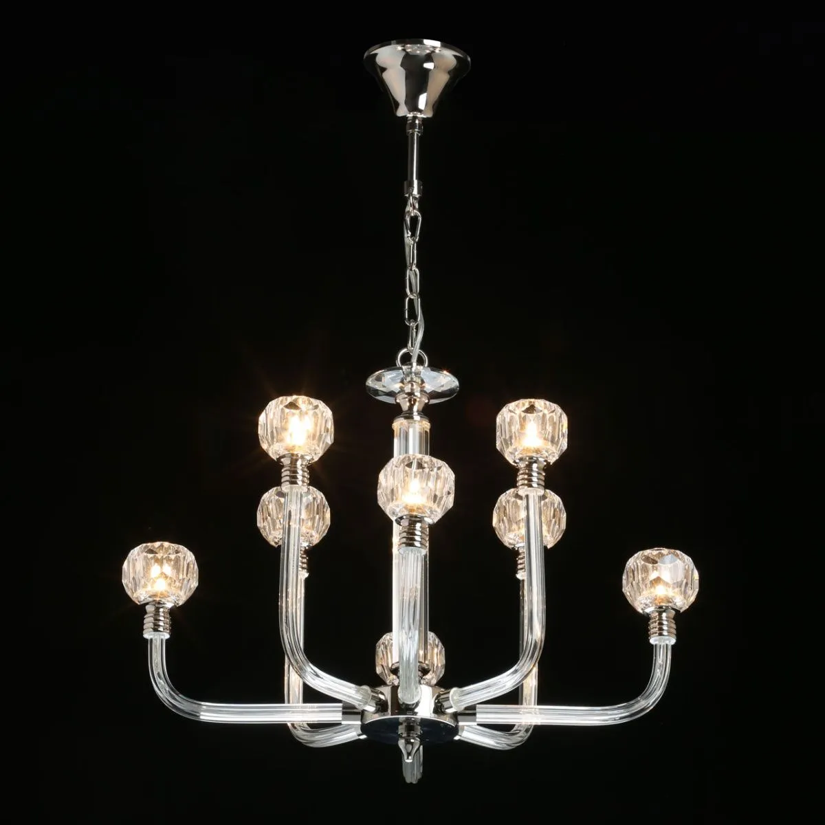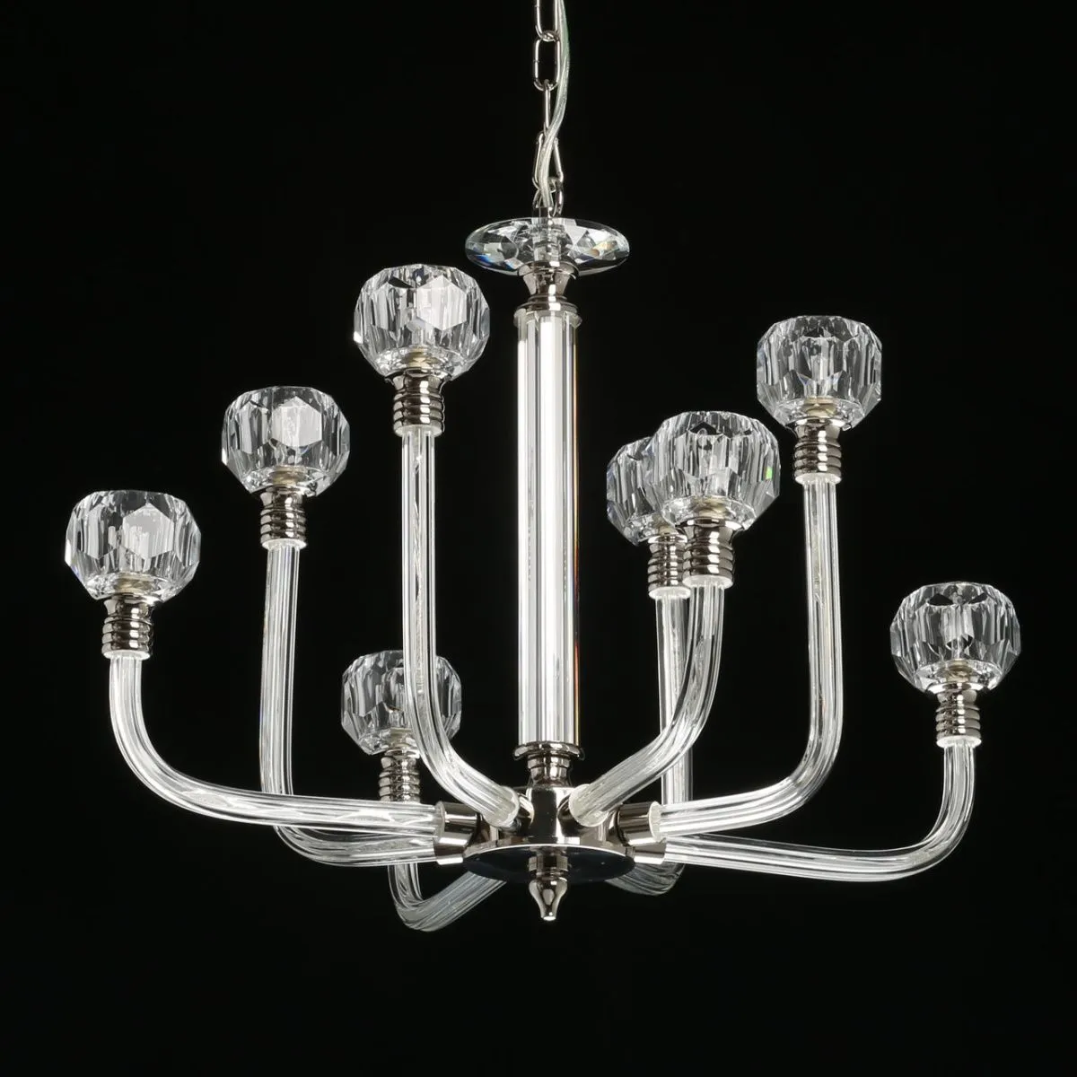 Основание/ металл/ никель Плафоны/ хрусталь/ прозрачный Декор/ хрусталь + стекло/ прозрачный