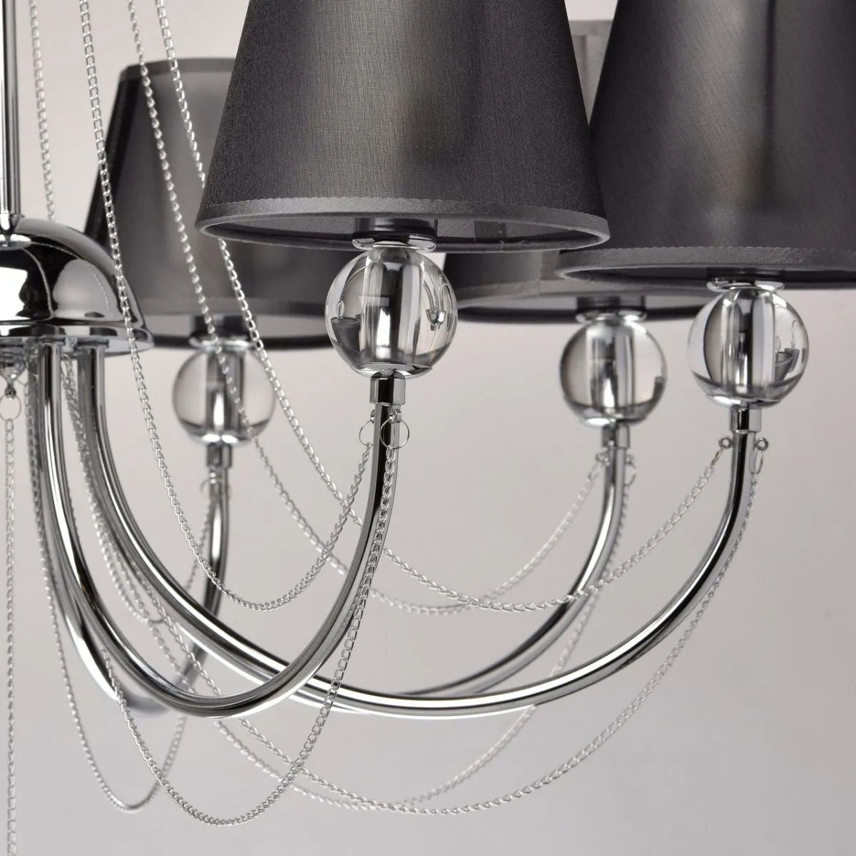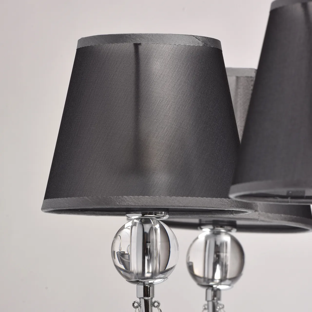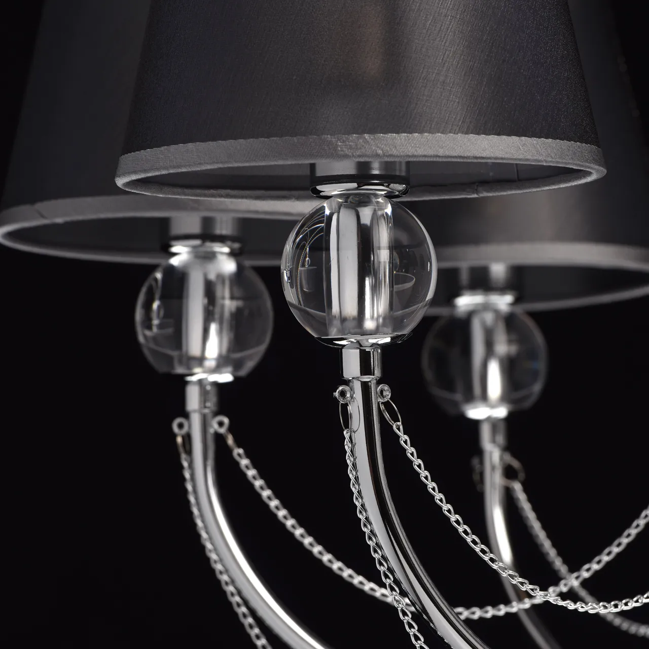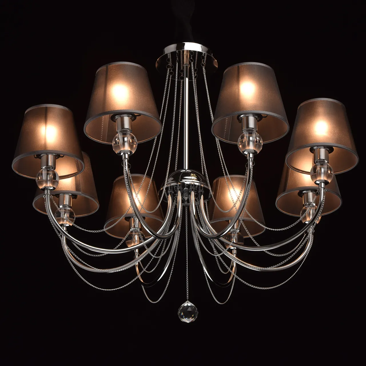 Металлическое основание цвета хрома. Плафоны - органза. Декор - хрусталь