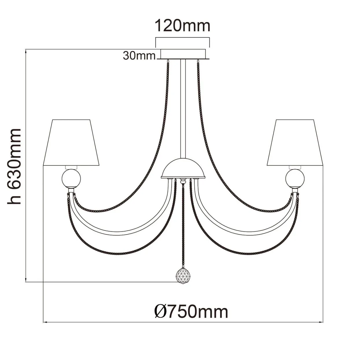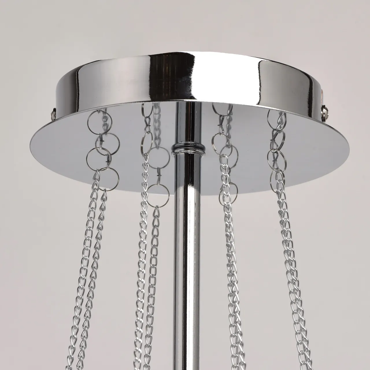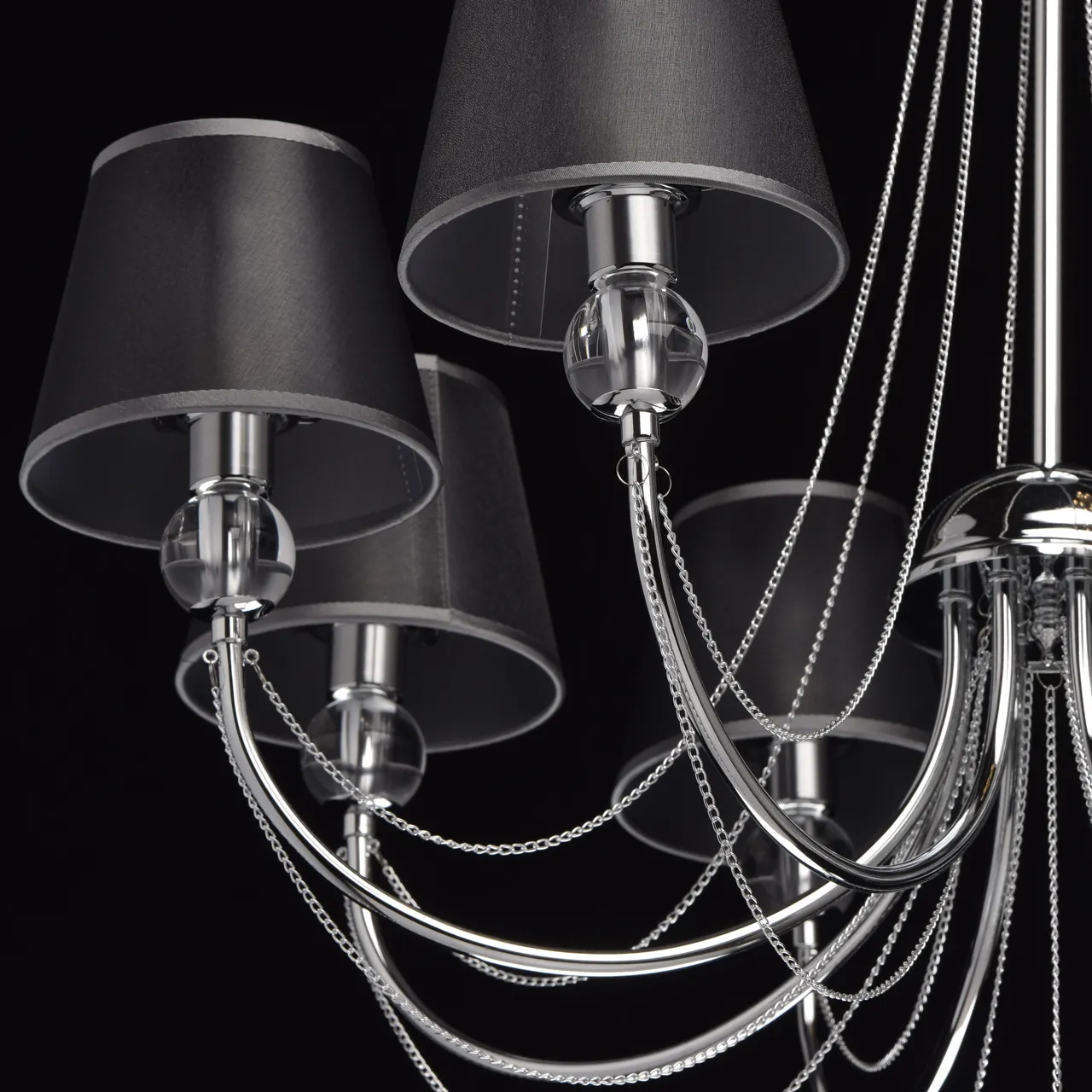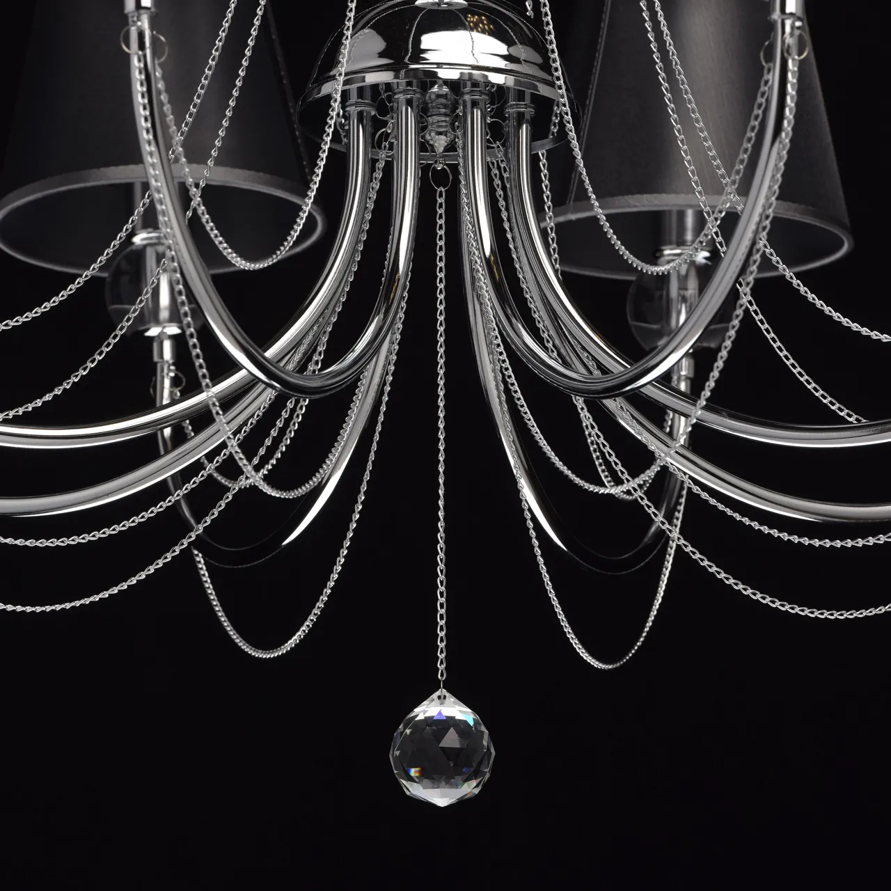 Металлическое основание цвета хрома. Плафоны - органза. Декор - хрусталь