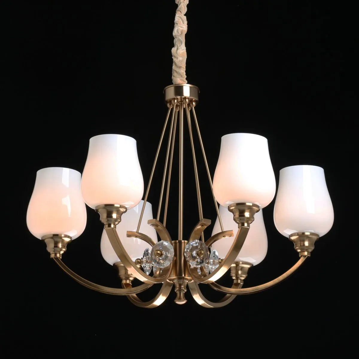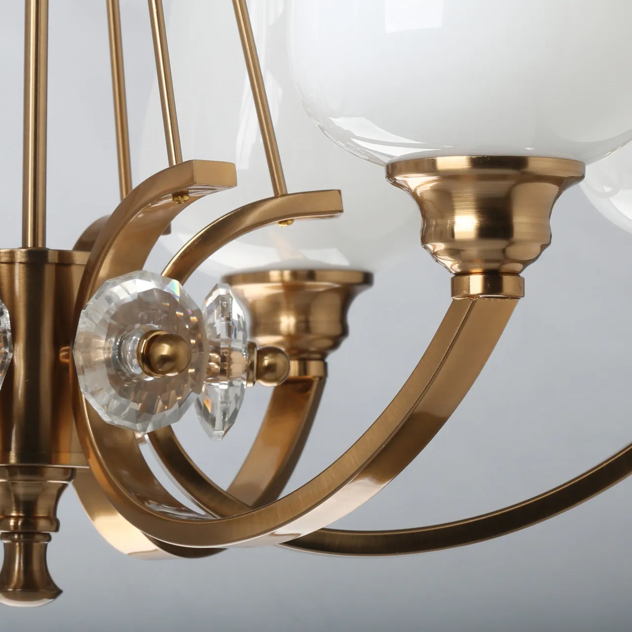 Основание/ сплав алюминия, металл/ латунь Плафоны/ стекло/ белый Декор/ стекло/ прозрачный