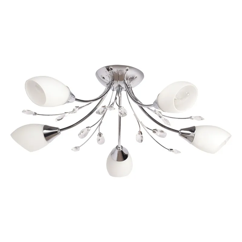 Металлическое основание цвета хрома, стеклянные плафоны, хрусталь.