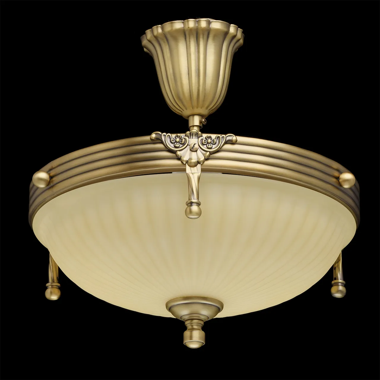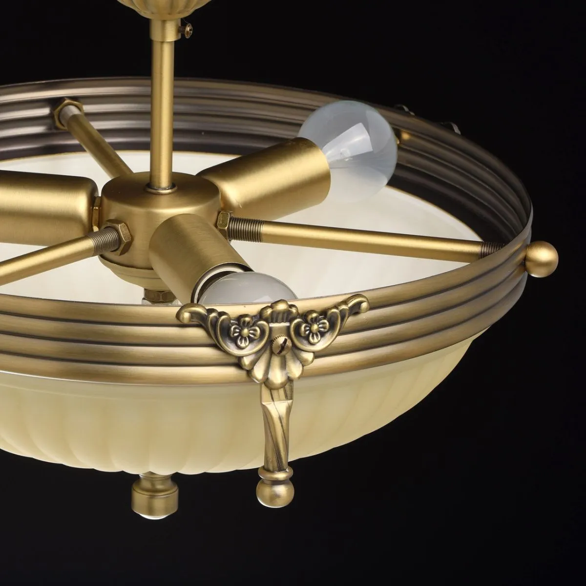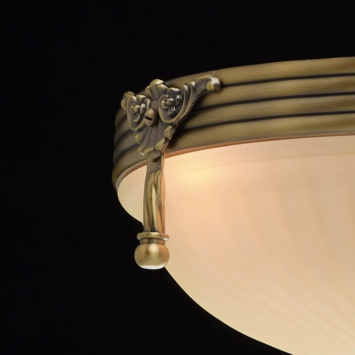 Алюминиевое основание цвета античной бронзы, стеклянный плафон цвета ванили.